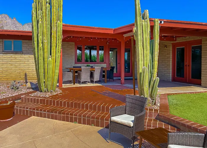 Per la comodità degli ospiti sono disponibili una zona pranzo all'aperto, nonché servizi per la preparazione di tè/caffè. Gli ospiti possono inoltre usufruire di un microonde, un frigo e utensili da cucina per preparare i propri pasti. Situato a 2 km da questa villa, il ristorante North Italia serve piatti della cucina italiana. L'aeroporto Internazionale di Tuscon è raggiungibile in 36 minuti di auto da questa struttura con 3 camere da letto.